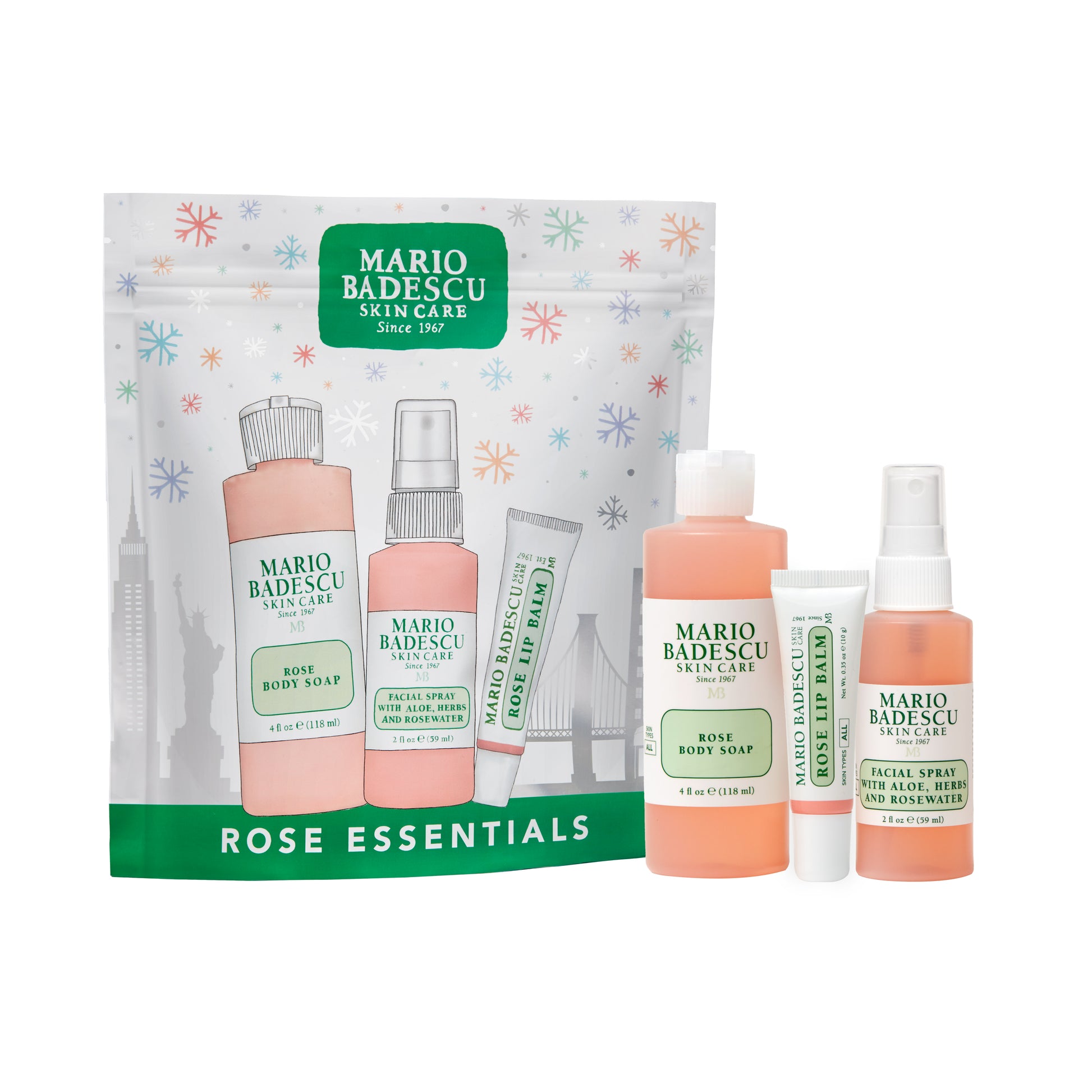 Mario Badescu Rose Essentials holiday kit features three rose-infused favorites to pamper skin from head to toe.